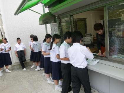 今日は水着の販売がお昼休みにありました。1年生の列ができていました。暑くなってきて、もうすぐ体育の授業で水泳が始まりますね。明日も販売があります。