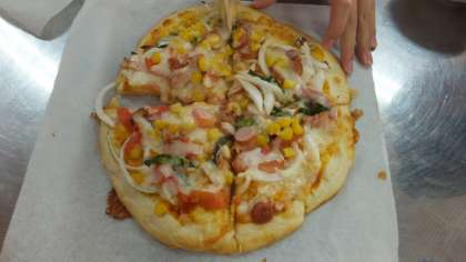 自分たちで作ったピザはとてもおいしかったと思います。