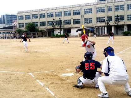 6月10日(日)、十三中学校で、区PTAソフトボール大会があり、第1試合目は勝ちました。