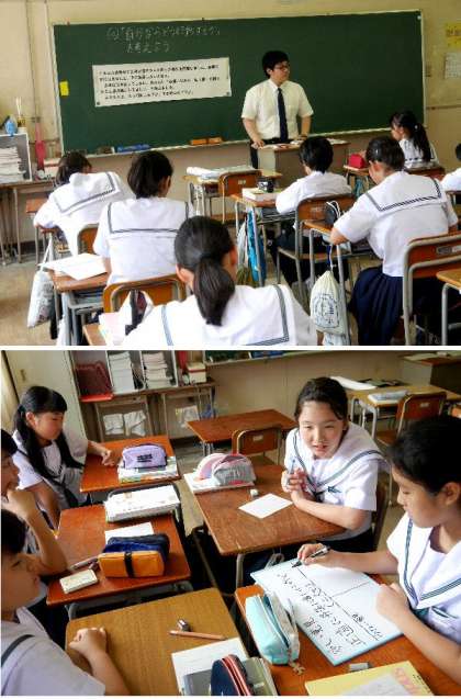 今日は、今週末で教育実習を終了する先生の研究授業がありました。生徒たちはとても積極的にグループトークをしながらしっかり発表していました。