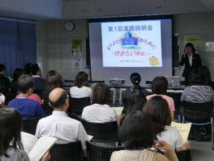 土曜参観授業のあと、センターで第一回進路説明会をおこないました。たくさんの保護者の方々にきていただきました。3年生は卒業にむけて進路選択がまっています。すべての生徒が希望する進路にすすめることをねがっています。よりよい進路選択ができるように、各家庭でじっくりとお話してみてください。