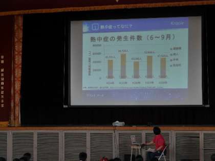 今週からとても暑くなってきました。1年生では熱中症についてて知り、適切な対処方法などを学びました。