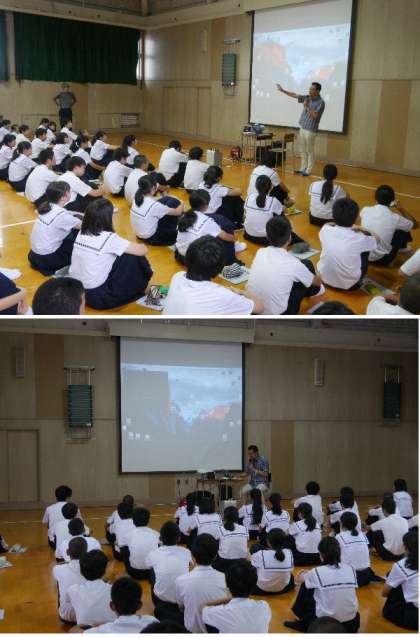 3年生では、フリージャーナリストの方にゲストティチャーで来校いただきました。イラクやアフガニスタン、南スーザンなどの戦争を取材されていて、テレビなどでも取材報告されています。実際の現場のビデオなどを見せていただき、戦争下での子どもたち生活などを教えていただきました。戦争被害の取材体験をもとに平和について考える授業となりました。