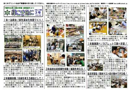 校長室だより「緑こき地に」第3号を配布しアップいたしました。
