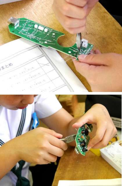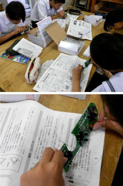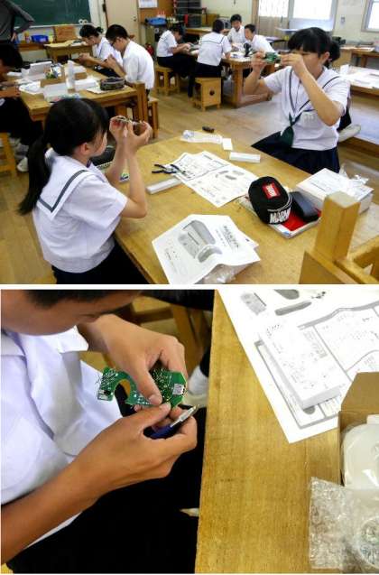 2年技術科で作業!ラジオ付あんしんライトの製作