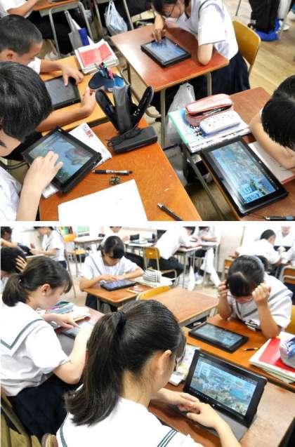 3年の社会では、昭和の1960年ころの日本の生活の細かい絵をタブレットでみています。戦後から変わってきた日本の生活を探してします。3Cなんてのもありましたね。