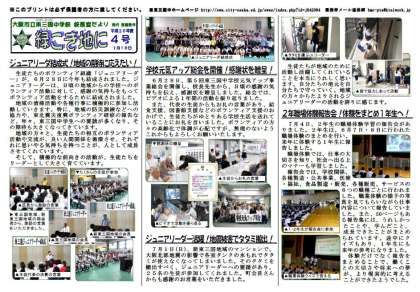 校長室だより「緑こき地に」第4号を配布しアップいたしました。
