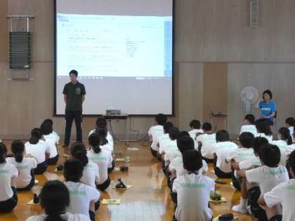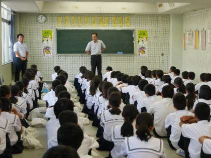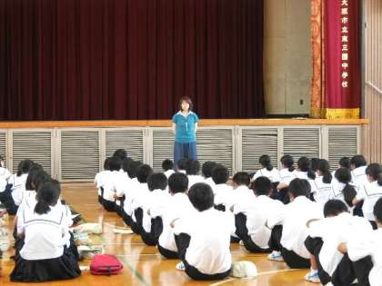夏休みを前に、各学年では集会をひらいて注意がありました。1年はセンターを借りました。