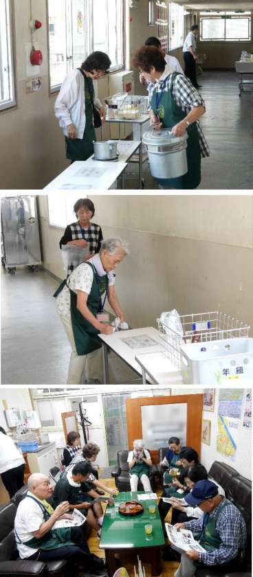 今日もたくさんの地域の元気アップボランティアさんが支援にきてくれています。本当に暑い廊下で食器などをかたづけていただき、本当にありがとうございました。生徒たちがゆとりを持って、落ち着いたお昼を過ごすことができました。