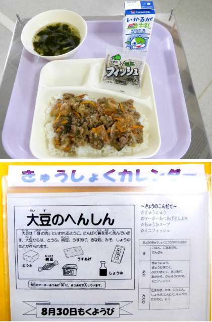 今日の献立は、マーボーあつあげどんぶり、牛乳、中華スープ、ミニフィッシュでした。おいしかったですね。