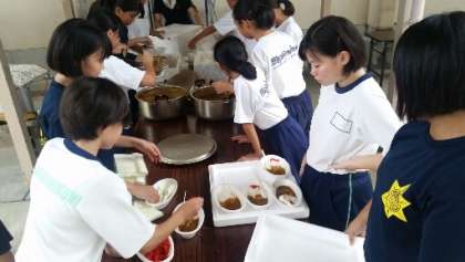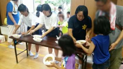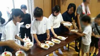 作ったカレーを小学生に配りました。