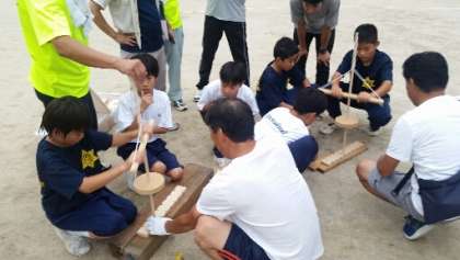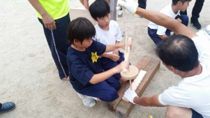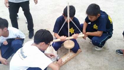 キャンプファイヤーの準備です。うまく火がつくかな!