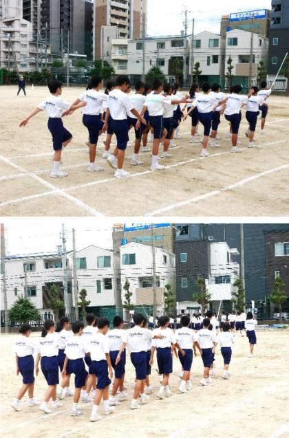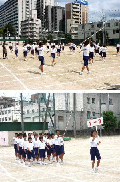 運動場で体育大会の練習はじまる