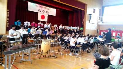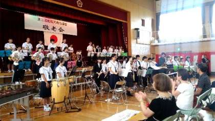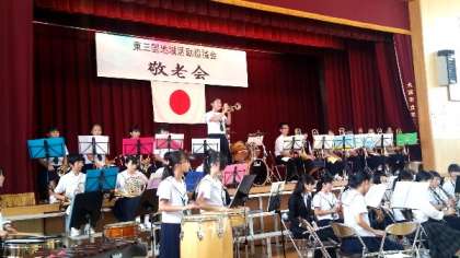 今日は東三国地域の敬老会が小学校でおこなわれました。東三国中からは吹奏楽部の生徒たちが演奏をしてくれ、お年寄りの方を楽しませてくれました。