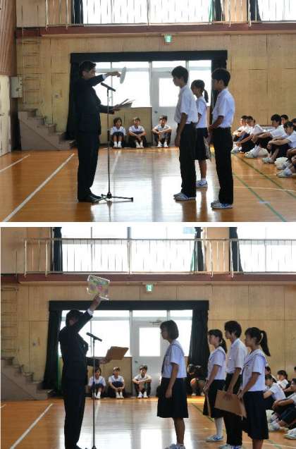 また、新東三国地域のポスターで表彰された生徒にも改めて全校集会で賞状をお渡ししました。