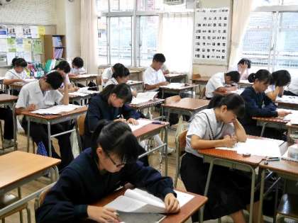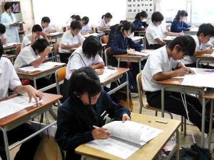 今日は大阪府内の中学校で一斉に、統一テストが行われました。進路などの学校間の成績の確認ゆ調整をするものです。生徒たちは問題に集中して取り組んでいます。