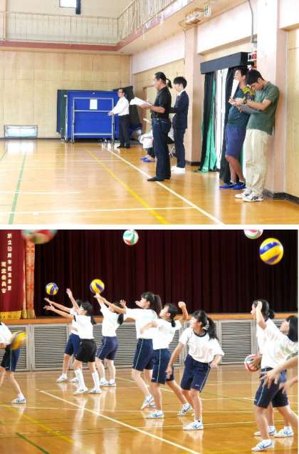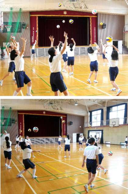 教育実習最後の今日、3年女子体育で研究授業が行われました。バレーボールのパスやスパイクの練習をしっかりとしていました。