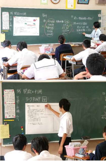 研究授業が毎日のようにあります。今週は先生がたの研究授業週間になっています。先生がたが順に研究授業をしています。3年数学は二次関数の問題を順序だてて解いていました。