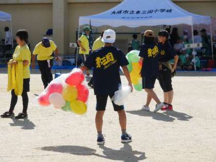 日曜日の今日、東三国地域の運動会が開催されました。中学校からジュニアリーダたちが運営協力で参加してくれました。競技にも中学生が参加しもりあがっていました。