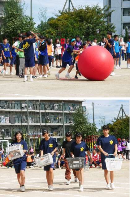 台風一過の日曜日の今日、新東三国地域の運動会が小学校で開催されました。たくさんのジュニアリーダたちが運動会の運営スタッフとして協力してがんばっていました。競技にも参加して楽しそうに活動していました。