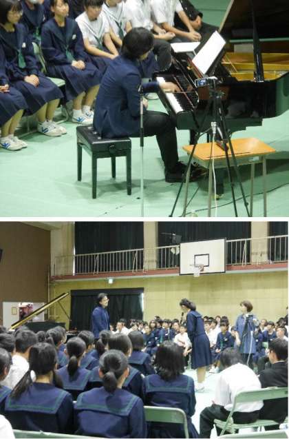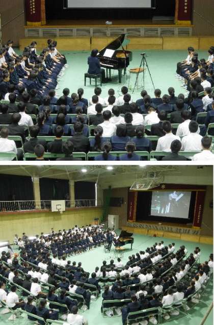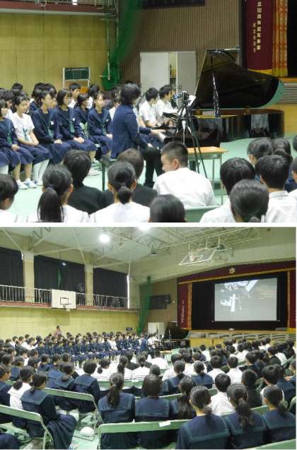 芸術鑑賞会をおこないました。病気の発症を機に左手のためのピアノ作品の演奏をされています。東三国中学校の卒業生でもあり、母校の芸術鑑賞会で演奏を披露していただきました。