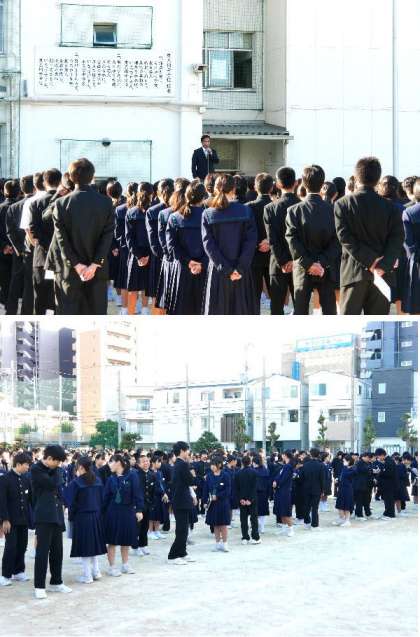 更衣完了!冬服そろう全校集会