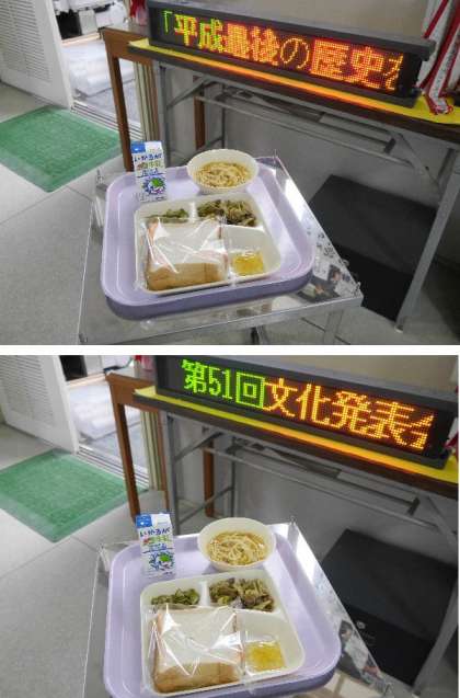 校長室前には、電光掲示板が文化発表会のお知らせをしています。