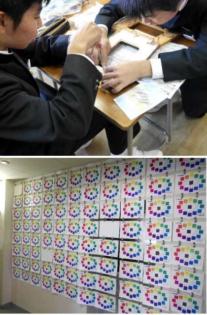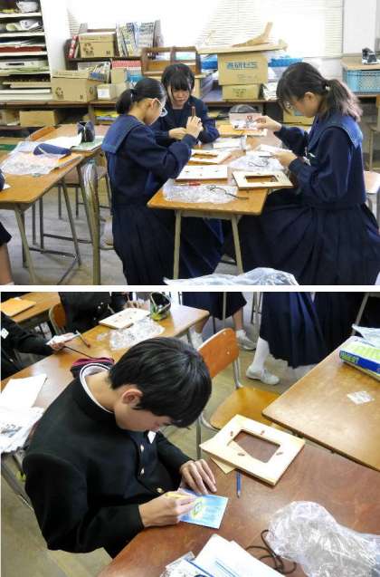 今週末の文化発表会で展示するために、3年生が作ってきた彫刻額に入れる絵を画いたりして、展示準備をしています。