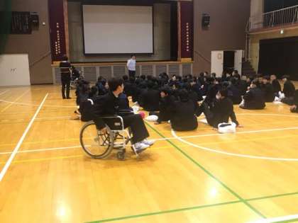 2年生はユニバーサルデザインと車椅子について学びました。ユニバーサルデザインは公平性、自由度、単純性、わかりやすさ、安全性、省体性、スペースの確保などの7原則があります。来週の校外学習ではエイジレスセンターで体験するなど、具体的に福祉について学んできます。