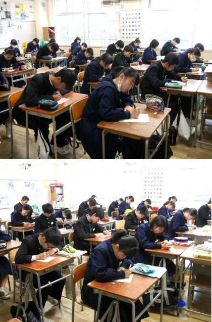 朝の学活でも小テスト!3年の朝の教室の様子