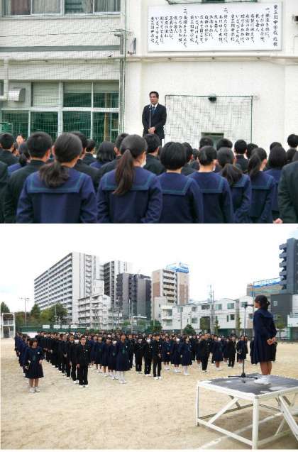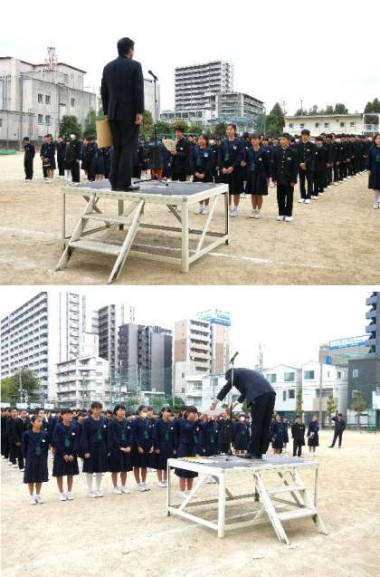 校長先生からは「勝負脳」についてお話しました。世界トップクラスのアスリートを調べると、どんな時でも否定的な考え方をせず、常に前向きに、目標をきめて、途中であきらめずに、全力で練習にも打ち込むことで勝負に挑む脳が作られるそうです。期末テストの1週間前となりました。テストにむけて計画的に全力でとりくんでほしいですね。