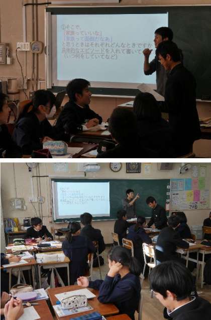 来年から中学校でも教科書が配布され教科として道徳がスタートします。プロジェクタも使ったり、いろいろな方法で生徒たちにせまります。「家族っていいな」というエピソードをだしあっていました。