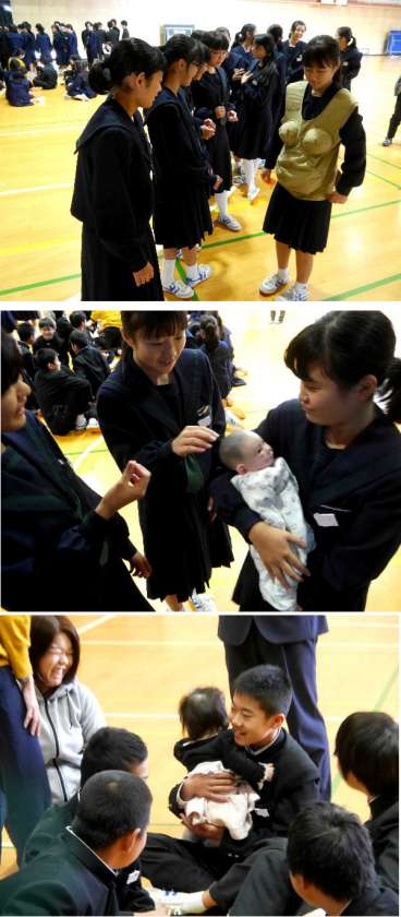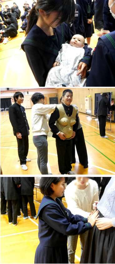 1年性は、5・6時間目に性教育の授業がありました。西淀川区の助産師さんたちにきていただき、赤ちゃんが生まれる様子のビデオをみたり、いのちのすばらしさについて学習しました。実際に妊婦さんのおなかを触らせてもらったり、赤ちゃんをだっこさせてもらったり、乳児の人形をだっこしたり、妊婦体験として10kgもあるスーツをきたりして体験的に学習しました。自分たちの名前の由来について親の思いなどの発表もありました。とても笑顔がこぼれ、いのちの大切さ、自分たちがたいせつに育てていただいてきたことを知ることができました。