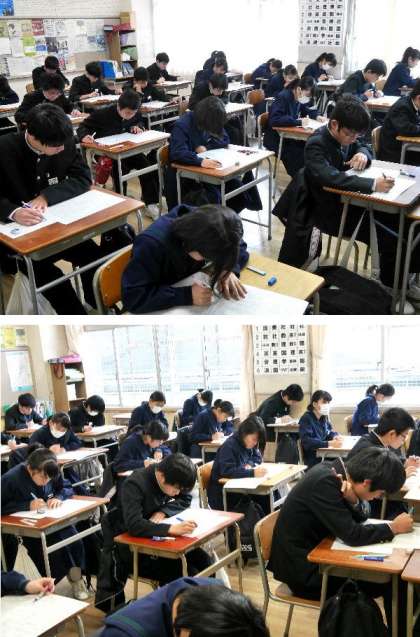 今日と明日の2日間、3年生は中学最後の実力テストがあります。これまでの努力の成果を期待しています。集中してがんばってください。