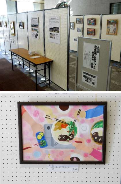 また、同じ階には、中学生絵画コンクールの入選作品が展示されています。東三国中学校の2年女子が佳作に入賞し展示されています。