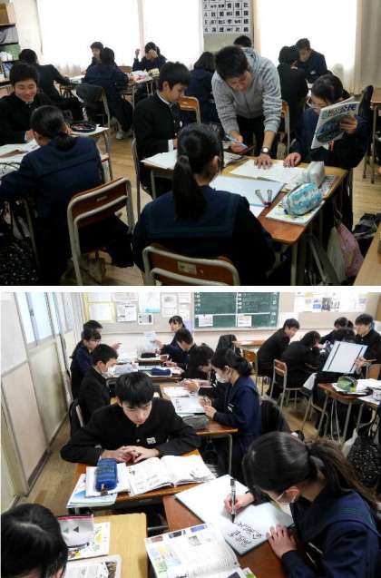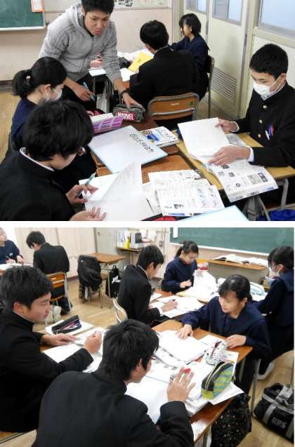3年社会では金融のしくみについて学習しています。グループで世の中の動きについて考えています。