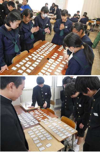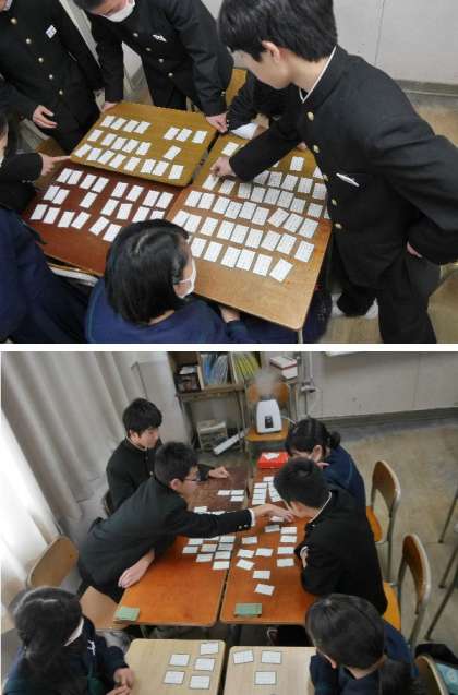 明日の午後、2年生は格技室で百人一首大会がひらかれます。その前日練習を各学級で行っていました。とても熱心に取り組んでいます。
