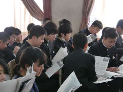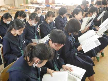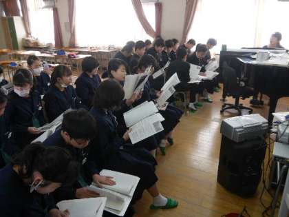 1年音楽の授業で音楽室から、「オーシャンゼリゼ!」と大きな声が聞こえてきました。元気よく楽しそうに歌っています。