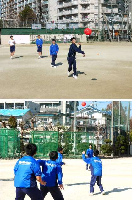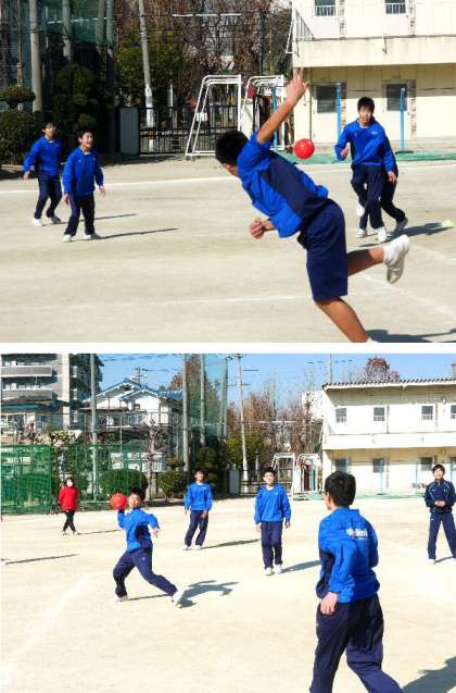 1年生の球技大会を今週末に行います。その練習をしました。男子は元気いっぱいで運動場でドッヂボールです。