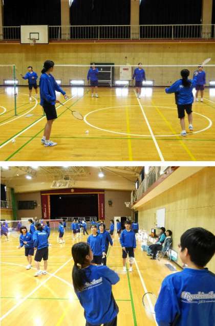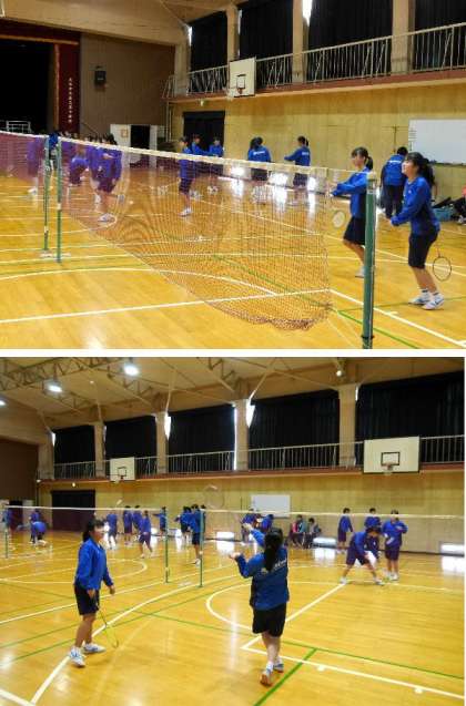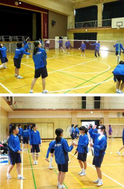 1年生の球技大会が今週末に開催されます。女子は体育館でバドミントンです。バドミントン部の生徒が教えながら、楽しそうにプレイしています。