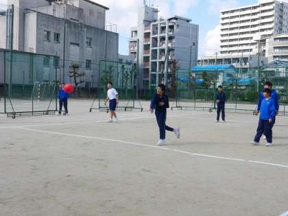 1年生球技大会。男子は運動場でドッヂボール。寒空のしたでの戦いでしたが、大いに盛りあがりました。