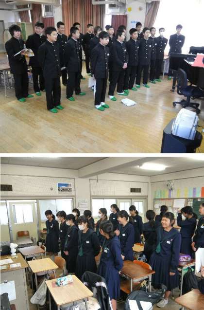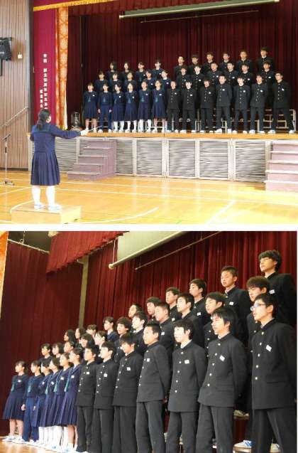 2年生の合唱コンクールにむけて、各学級が音楽室や体育館の舞台で練習をしました。