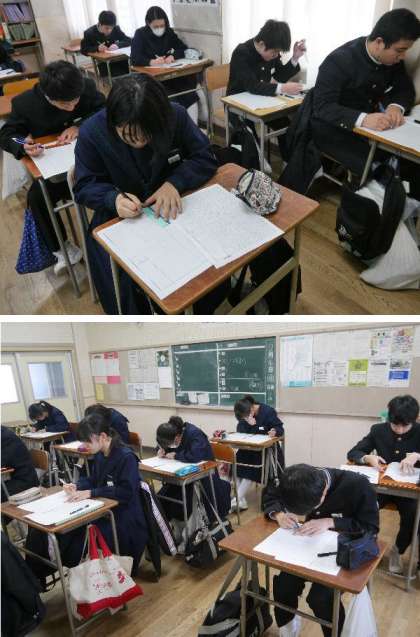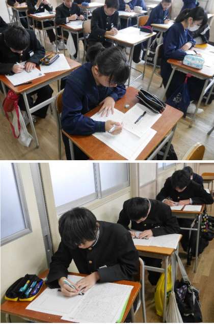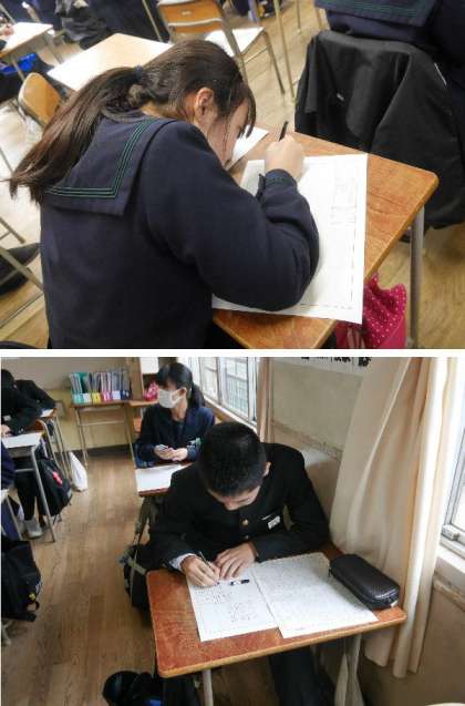 3年生では、卒業文集ならぬ、卒業新聞を作っています。下書きができた生徒は本書きをしだしました。卒業文集のように印刷して綴じてお渡しします。