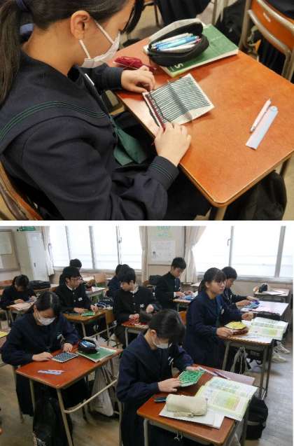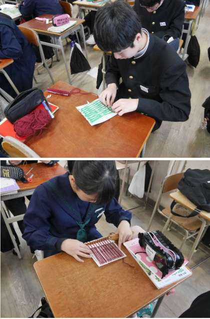 毛糸で布地をつくろう!2年家庭科