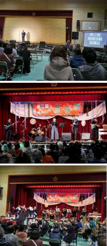 2月17日(日)、東三国音楽祭が東三国小学校で開催されました。地域内外の方々がたくさん参加され大盛況でした。いろいろなジャンルの音楽をライブで楽しめました。東三国中学校の校長先生も先生バンドで参加しました。