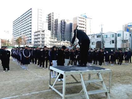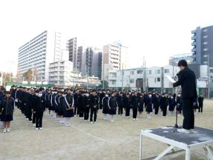 校長先生からは、孟子のことば「百里を行く者は、九十里を半ばとす」とお話ししました。最後まで気をぬかないようにということです。あと一か月で3年生が卒業ですが、最後まで学習や中学生活をしっかりがんばっていきましょう。