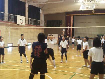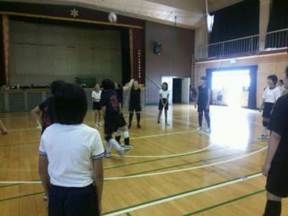中学生、小学生混じっての円陣パスです。さあ、何回続くかな???