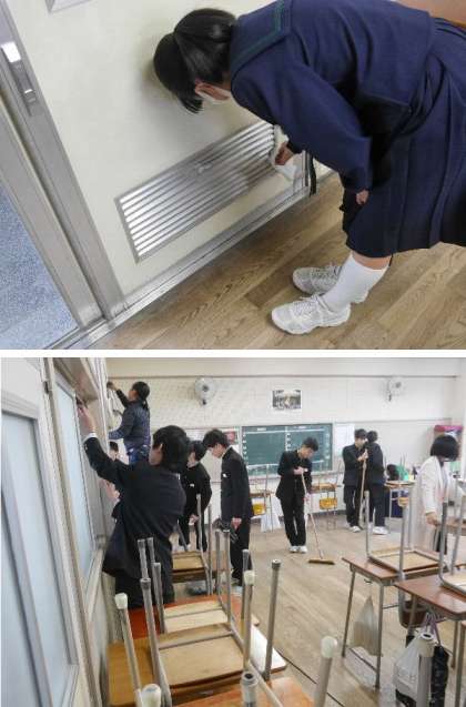 3年生は教室の油引きをしました。もうあと2週間で卒業になります。3年か過ごした学校をきれいにして巣立ちます。