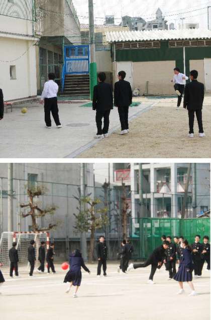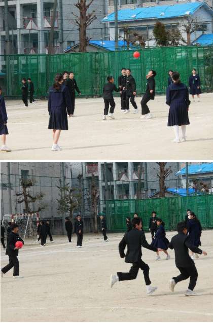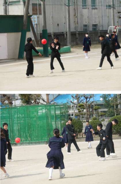 1年生はみんなで運動場でボール遊びをしています。元気いっぱいです。だいぶあたたかくなってきたので、きもちいいですね。