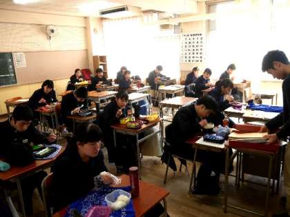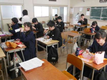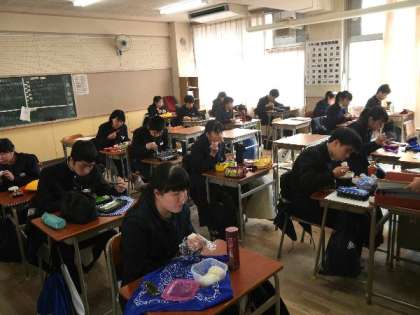 起用は、公立高校一般選抜の出願です。約半数の生徒が出願します。出願する生徒はお弁当をたべて出発します。